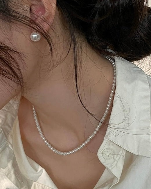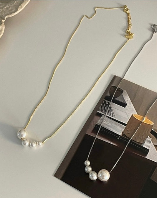 Minimalist Thin Snake Bone Unisex Pearl Necklace