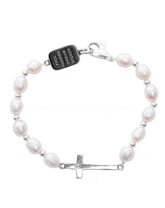 KREAM Freshwater Pearl 925 Sterling Silver Cross Bracelet